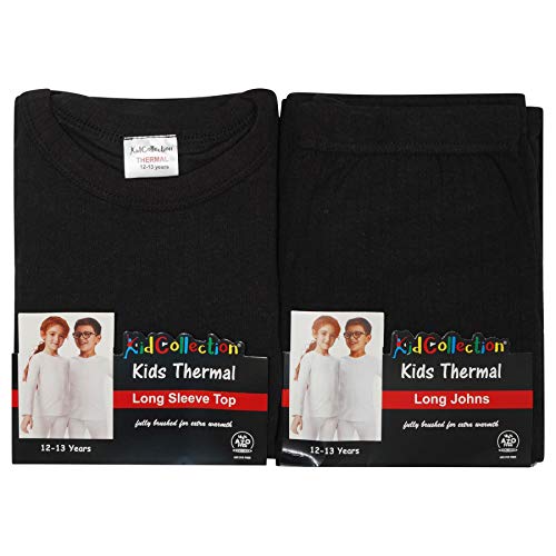 Thermal Underwear Set by KidCollection, Each Set Contains a Long Sleeve Top and Long John Style Bottoms/Leggings, Perfect Baselayers for keeping warm in the Winter. 50% Cotton, 50% Polyester, Great to be Wear Alone as Winter Lounge wear/Nightwear, or add an Extra Layer under regular clothing or School Uniform. Also suitable for ski/snow holidays, camping, pyjamas, hiking and outdoor trips.