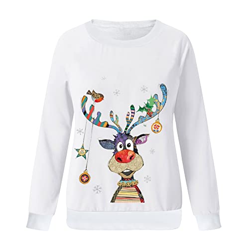 AMhomely Christmas Tops Womens Long Sleeve Xmas Graphic Shirts Santa Reindeer Print Jumper Novelty Funny Xmas Holiday…